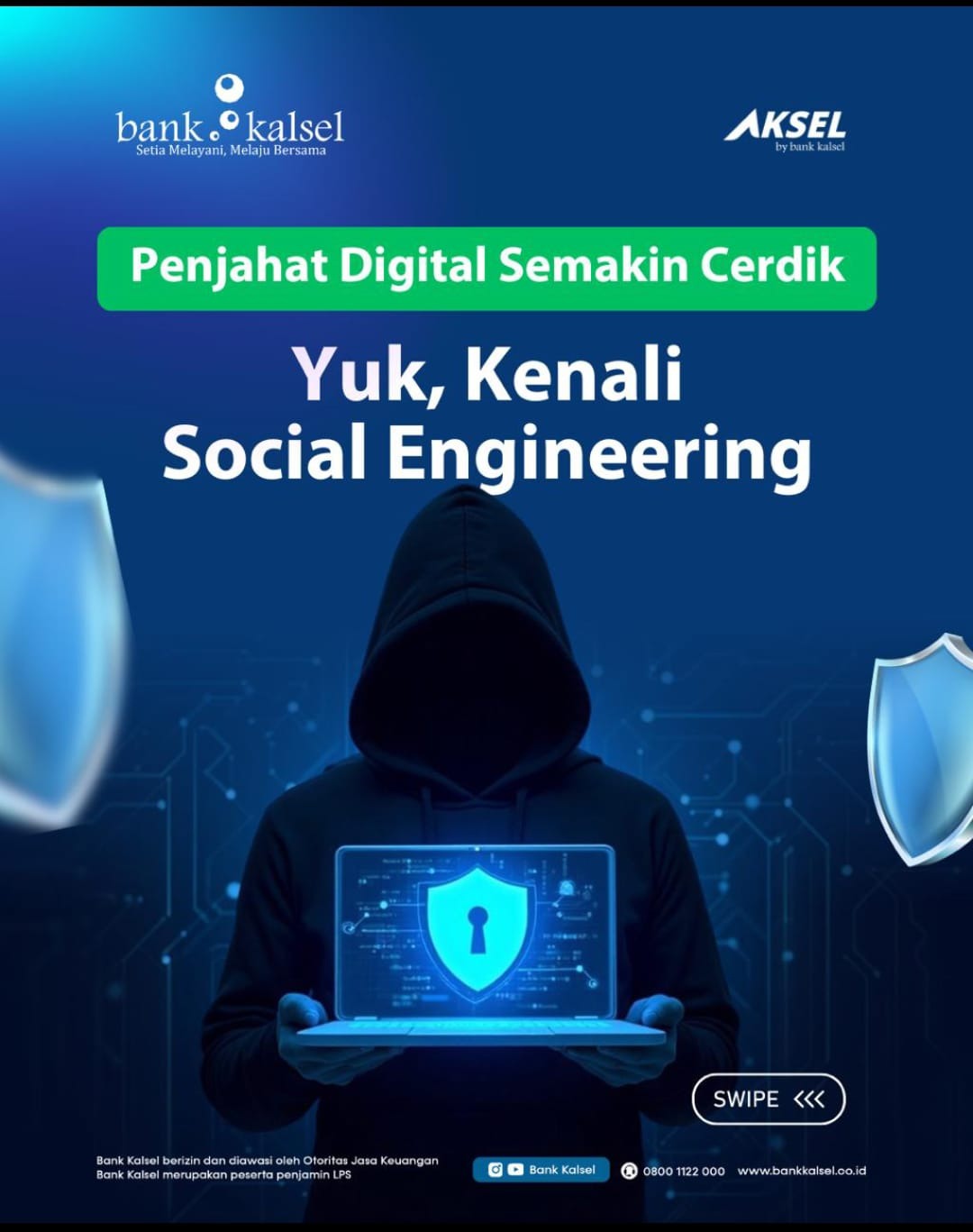 Bank Kalsel sendiri memberikan tips khusus agar terlindungi dari serangan social engineering. Salah satunya waspada terhadap pesan dan email yang mencurigakan. Selain itu jangan memberikan informasi pribadi secara sembarangan.