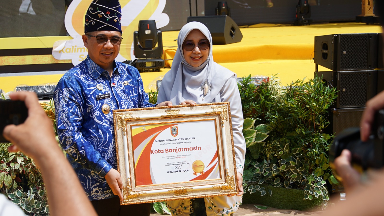 Momen bersejarah ini mengantarkan Wali Kota Banjarmasin H Ibnu Sina ke podium menerima langsung penghargaan yang diserahkan Gubernur Kalimantan Selatan H Sahbirin Noor. Wali Kota Banjarmasin, H Ibnu Sina sangat berterima kasih dengan Gubernur Kalsel yang sudah memberikan apresiasi kepada Pemerintah Kota Banjarmasin khususnya terkait pengelolaan pengaduan SP4N Lapor.