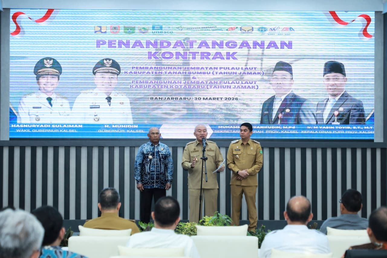 Kalseltenginfo.com, Banjarbaru – Pemerintah Provinsi Kalimantan Selatan memulai babak baru pembangunan infrastruktur strategis dengan penandatanganan kontrak pembangunan Jembatan penghubung daratan Kalimantan–Kabupaten Tanah Bumbu–Pulau Laut, Kabupaten Kotabaru.