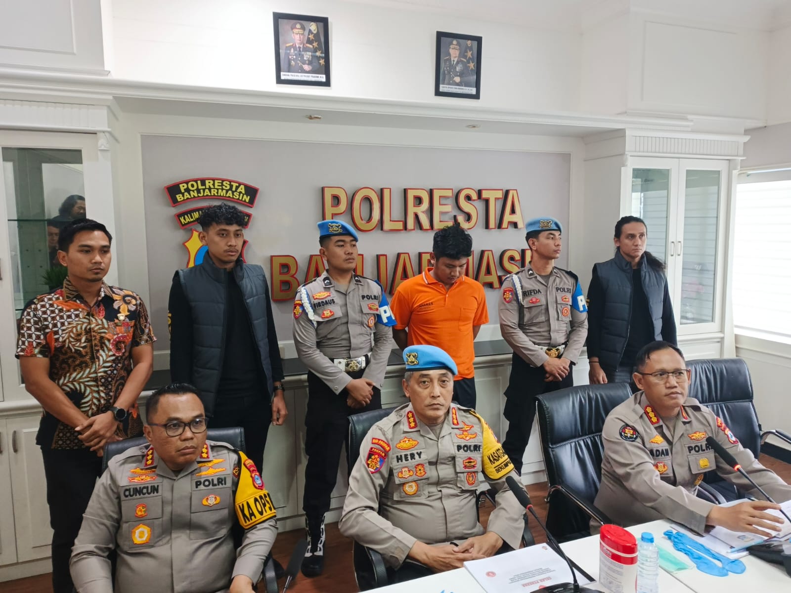 Pengungkapan kasus ini disampaikan langsung oleh Kabid Humas Polda Kalimantan Selatan Kombes Pol Adam Erwindi, didampingi Kabid Propam Kombes Pol Hery Purnomo, Kapolresta Banjarmasin Kombes Pol Cuncun Kurniadi, serta Kasat Reskrim Polresta Banjarmasin Kompol Eru Alsepa, dalam konferensi pers.
