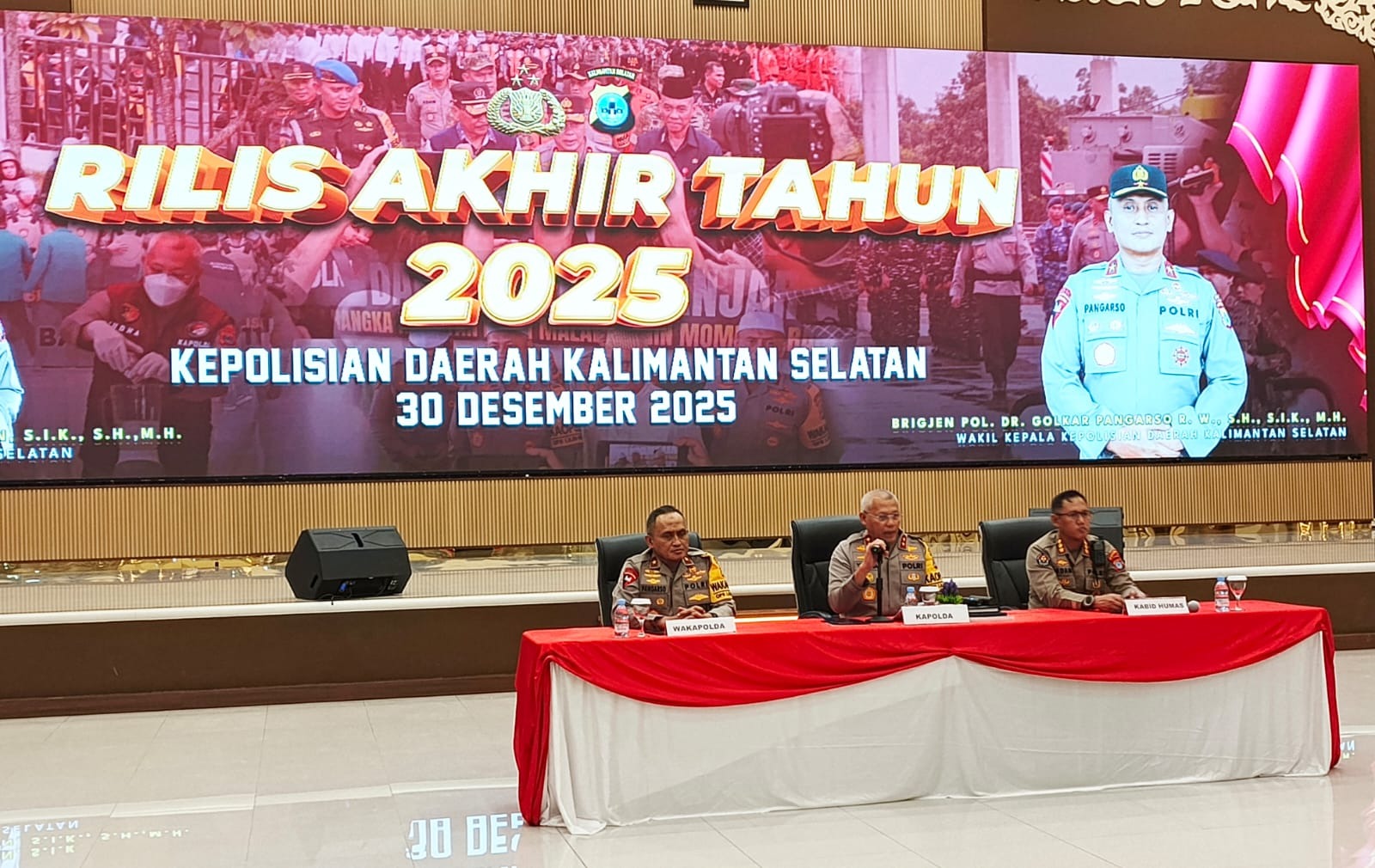 Kalseltenginfo.com, Banjarmasin – Menutup kalender kerja 2025, Kepolisian Daerah Kalimantan Selatan memilih membuka lembar evaluasi secara terbuka. Rilis Akhir Tahun yang digelar di Auditorium Polda Kalsel bukan sekadar agenda rutin, melainkan penanda komitmen institusi kepolisian untuk menghadirkan akuntabilitas di hadapan publik.