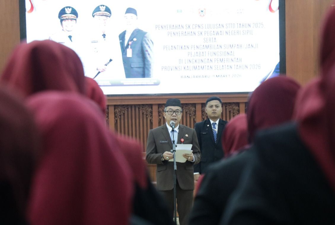 Kalseltenginfo.com, Banjarbaru – Pemerintah Provinsi Kalimantan Selatan mulai memperkuat fondasi birokrasi berbasis kompetensi dan keahlian. Langkah tersebut ditandai dengan pelantikan 116 pejabat fungsional serta penyerahan Surat Keputusan (SK) kepada delapan lulusan Sekolah Tinggi Transportasi Darat (STTD) pada Senin (09/03/2026) di Gedung Idham Chalid, Banjarbaru.