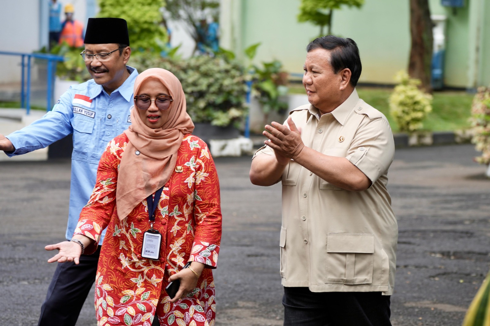 Prabowo terlihat hangat menyapa para pelajar. Ia bahkan menyalami satu per satu siswa dan sempat merapikan pakaian seorang murid, yang langsung disambut sorak gembira di depan aula sekolah.